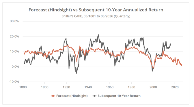 - We continue to believe the U.S. equity market offers poor long-term risk-reward. The S&P 500 is extremely expensive and dangerously concentrated, with roughly 10 mega‑cap technology stocks accounting for close to 40% of the index. Additionally, Wall Street continues to forecast highly optimistic earnings growth despite an economy navigating an energy shock, elevated interest rates, and a labor market losing momentum.