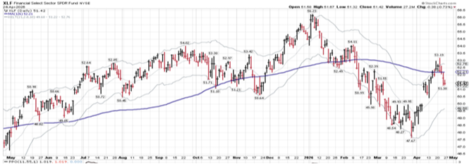 The S&P 500’s April surge looks narrow and speculative rather than healthy and durable. The index rallied 9.3% in April to a new all‑time high, but the largest 15 technology names alone contributed roughly 7 percentage points of that gain—about three‑quarters of the move—which underscores how dependent the rally has become on a very small group of AI stocks. Tech was also the only sector to set a new high alongside the index, while key cyclical areas like financials remain stuck below their 200‑day moving averages, a troubling signal given that a healthy financial sector is usually critical for sustainable economic growth.