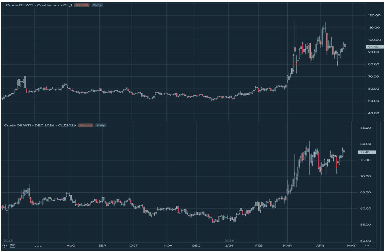 Despite the SP 500 sitting at a record high, oil prices remain nearly 60% above their pre‑war level, and the oil futures curve estimates that oil will be priced at $77.5 in December, about 30% higher than before the war, leaving the global economy in the midst of an energy shock.