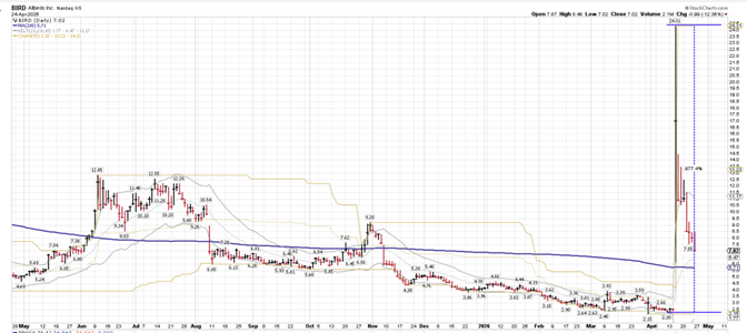 Also, meme stock mania returned during the market's three-week rally. Allbirds, the defunct shoe company, rebranded itself as “NewBird AI” and announced a pivot into AI compute infrastructure—despite having no operating history in that business—and the stock promptly exploded, rising about 1,000%.