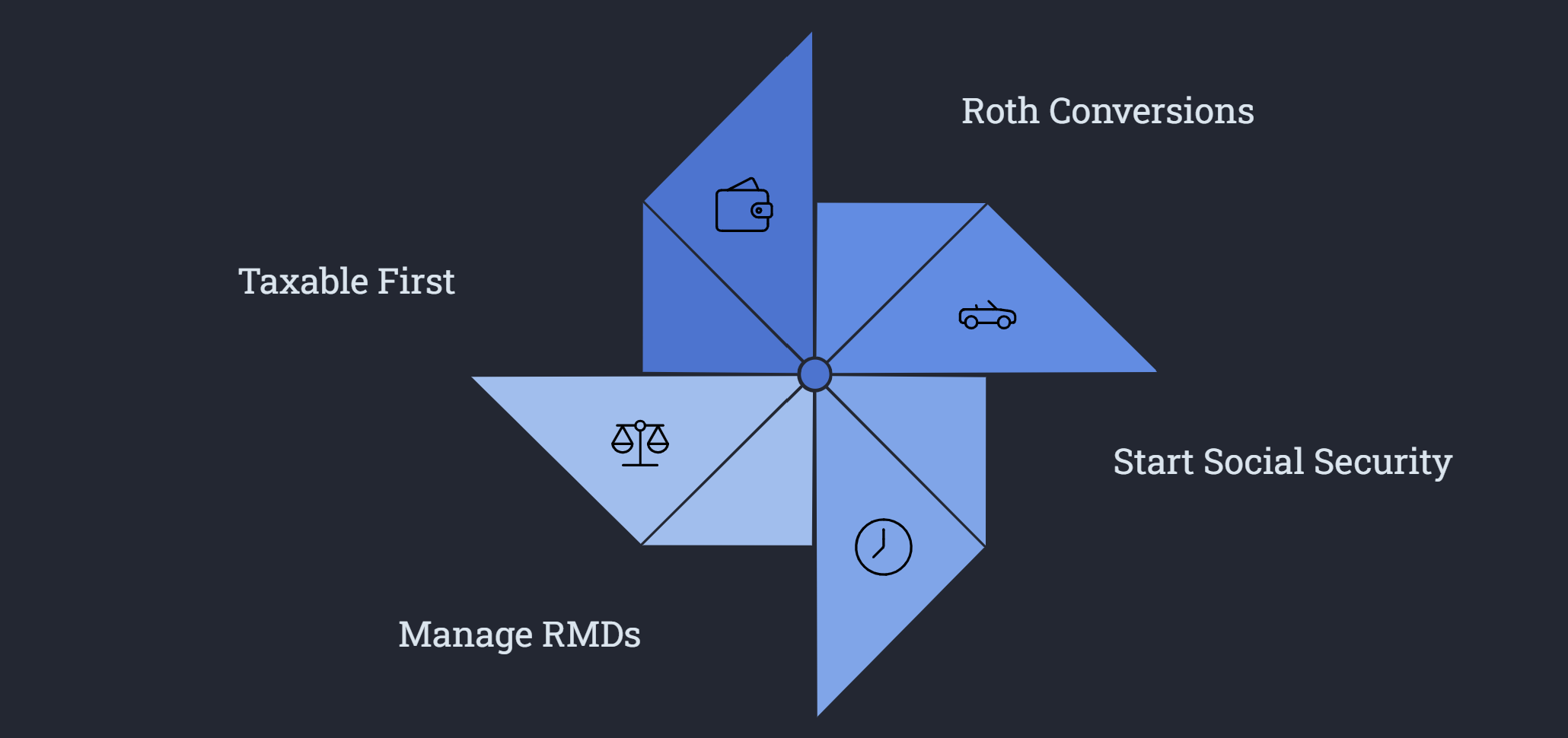 - Roth conversion planning during lower-income years pre-retirement or early retirement